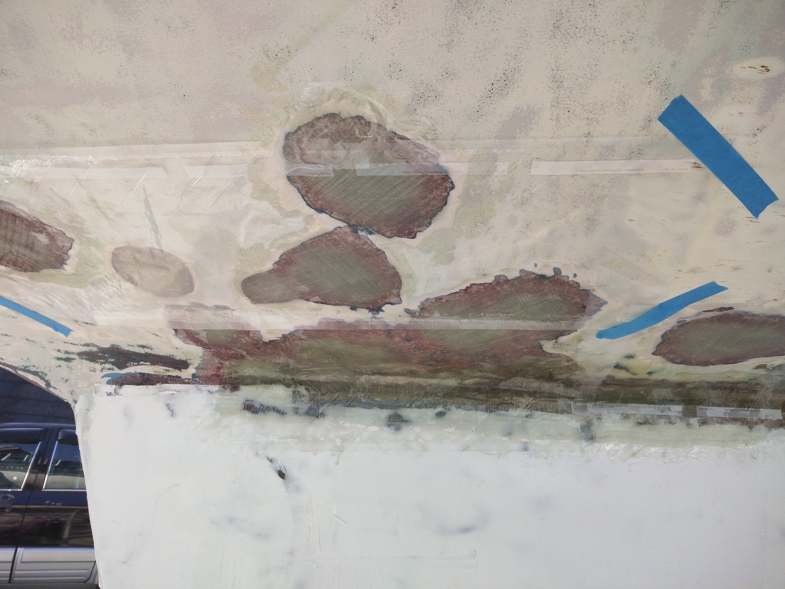 He spends the rest of the day putting the next few layers on the lazarette paint. Every now and then, he descends the ladder to glare at the side of my keel. Water, continuously trickling.