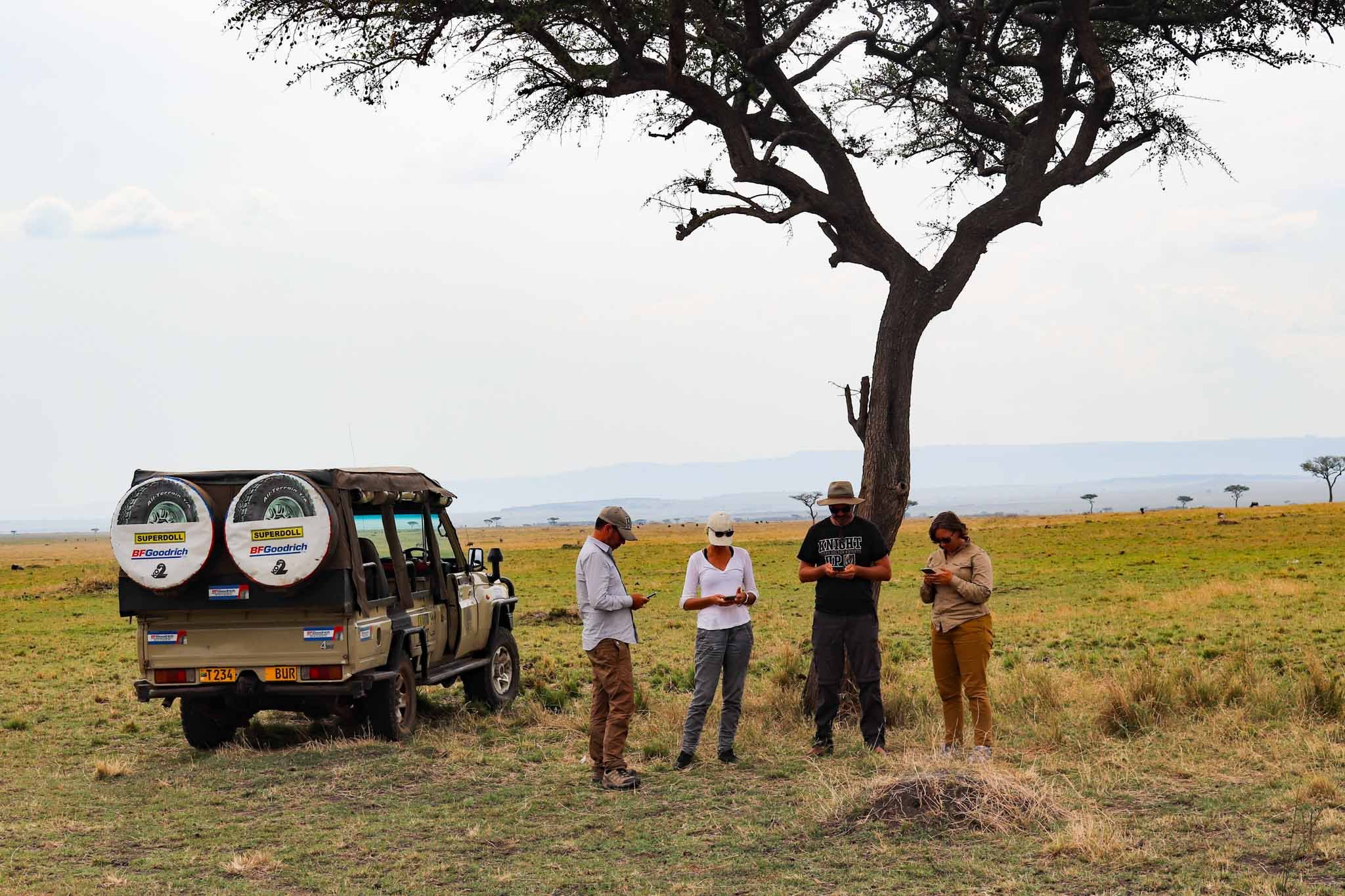I take off running in the Wildebeests’ direction, hoping they'd let me join the line for a while, but predictably, the line swerves to give me a wider berth. I circle back to my own herd. They have discovered this particular tree good for receiving internet service.